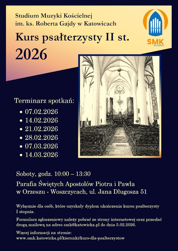 Kurs psałterzysty II-go stopnia w 2026 r. odbędzie się w naszej parafii.